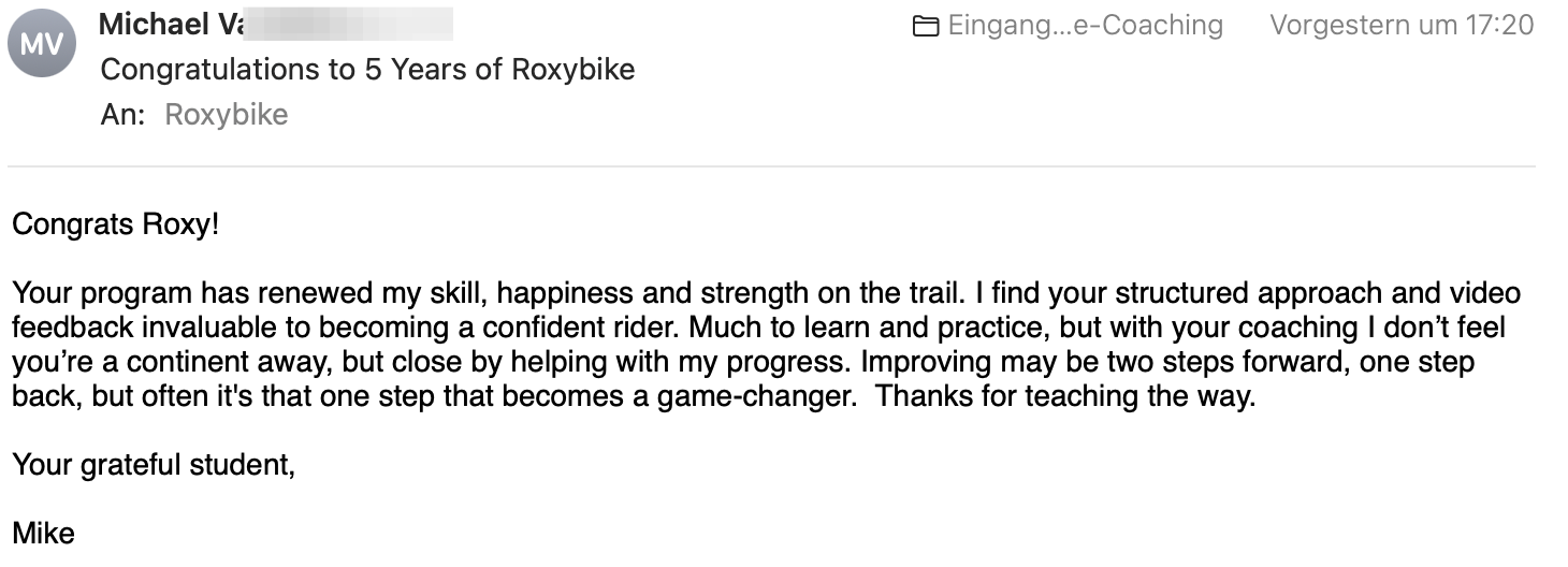 Here you can find testimonials and feedback I received on Google and an interview with me in Singletrack Magazine: